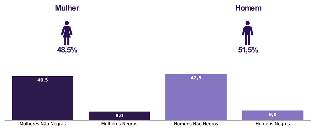 Elementos que podem explicar as diferenças verificadas: a) Composição do total de empregados por sexo e etnia e raça