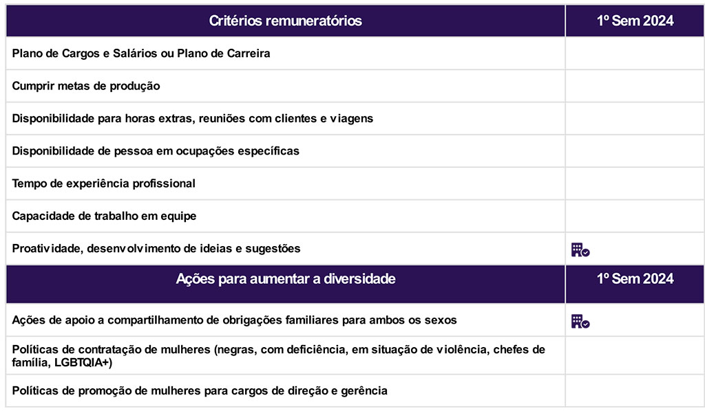 b) Critérios de remuneração e ações para garantir diversidade Questionário não respondido pelo CNPJ informado